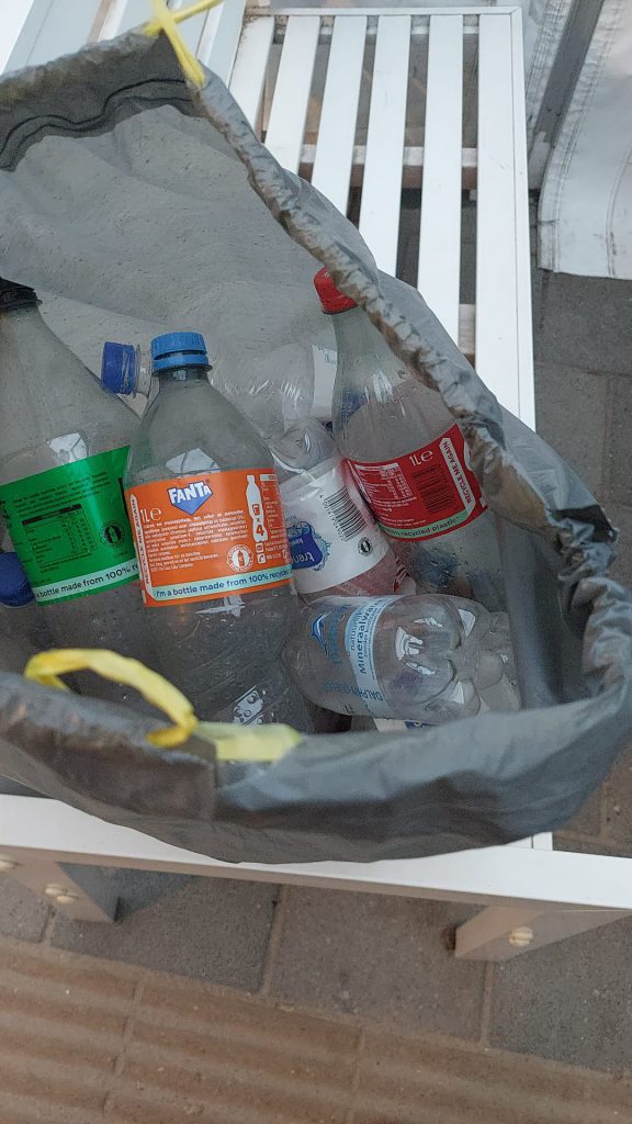 oktober 2025. Weer 2 volle tassen met statiegeldflesjes…..daar worden we blij van. Dankjewel!!!!