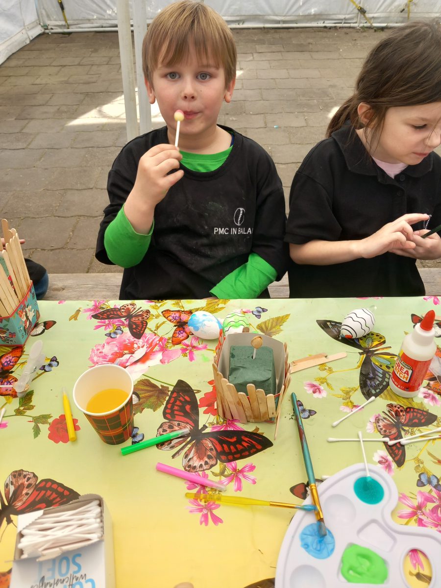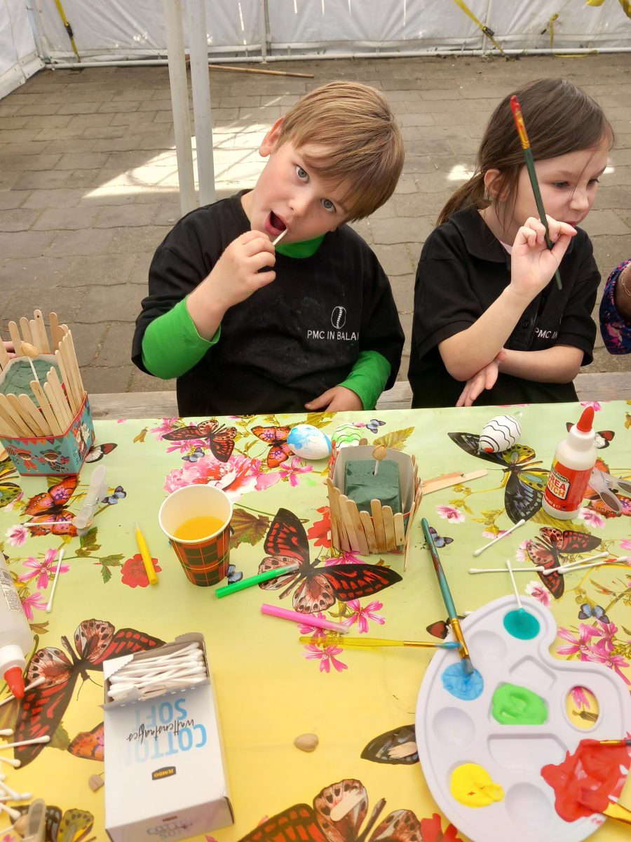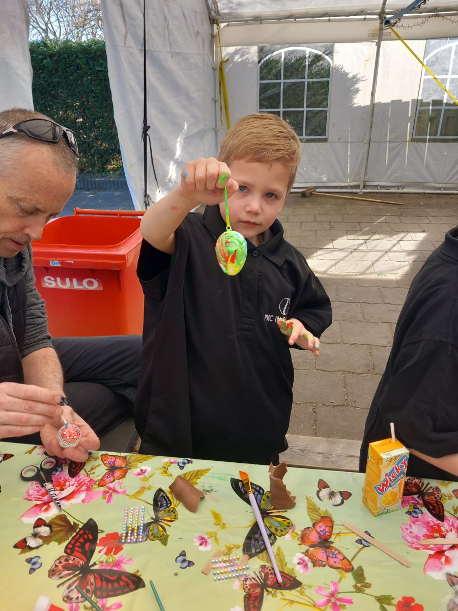 De kinderen kregen 2 eieren, 1 mocht er mee naar huis en de andere hangt in de kiosk aan de paasboom.