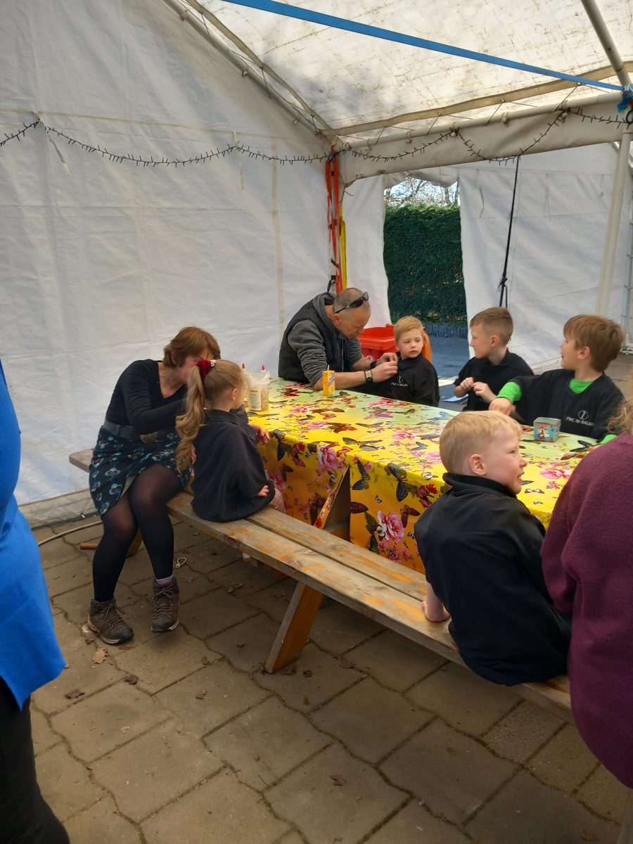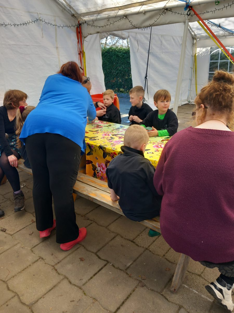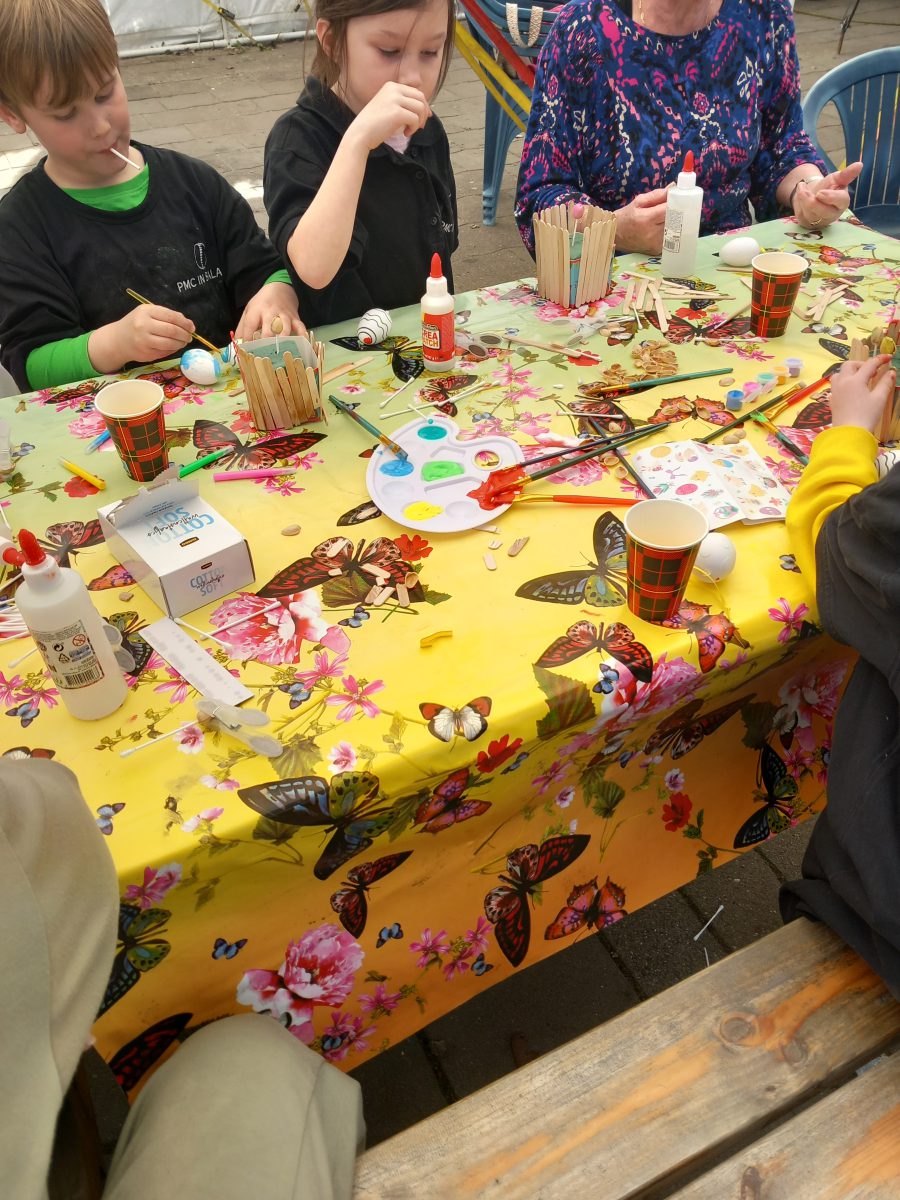 De kinderen kregen 2 eieren, 1 mocht er mee naar huis en de andere hangt in de kiosk aan de paasboom.