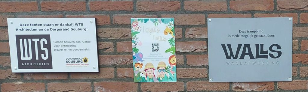 29 januari 2026: vandaag is het bordje van de nieuwste sponsor WTS architecten opgehangen en nu hebben we alle sponsorbordjes bij elkaar gehangen aan de gevel van de kiosk.